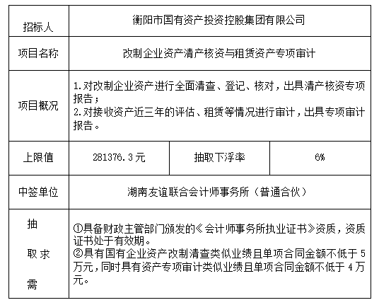 改制企業(yè)資產(chǎn)清產(chǎn)核資與租賃資產(chǎn)專(zhuān)項審計抽取結果公示