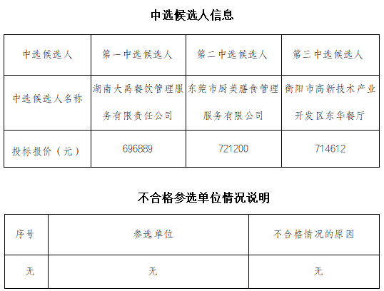 衡陽(yáng)國(guó)投集團(tuán)員工食堂勞務(wù)承包服務(wù)單位公開(kāi)比選中選候選人公示